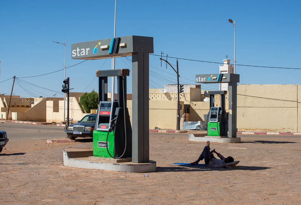 La tappa successiva, anche logistica, la facciamo a Choum: dobbiamo riempire i serbatoi e fare provviste perché per il resto della giornata percorreremo solo piste. Durante l'attesa, assistiamo allo svolgersi della vita del villaggio, incentrata sulla strada asfaltata che lo attraversa: un enorme camion fa benzina al piccolo distributore mentre bimbi molto vivaci scorrazzano sulla strada principale giocando a trascinare bottigliette di plastica riempite di sabbia.